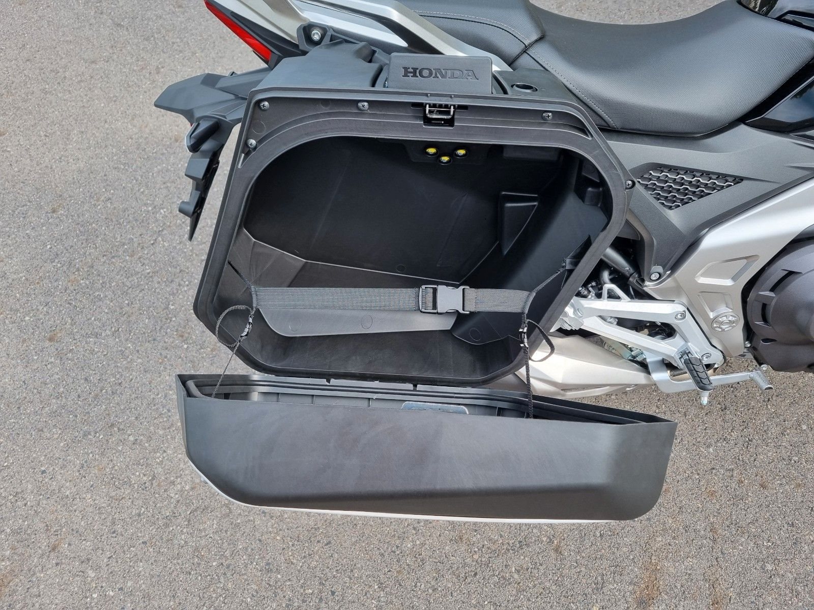 • Das Staufach hat 23 Liter Stauvolumen und bietet platz für einen Integralhelm